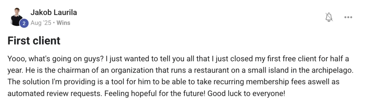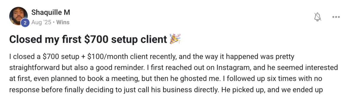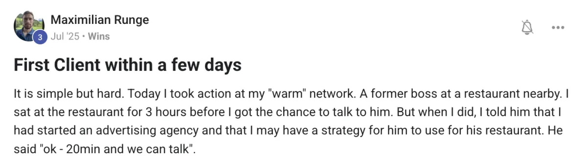 But that's not to say it's not possible to close a client in your first month. Many have. It comes down to how much work you put in.